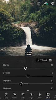Clarity tinggal atur sesuai selera ya, tambahkan Vignette supaya foto kalian terlihat lebih dramatis. Haha. Biasanya saya selalu mengatur juga Split Tone, namun di foto ini tidak saya atur karena warna di foto saya sudah cukup sesuai selera saya. Kalau penasaran, coba saja dibuka. Jika ingin seperti di film-film tambahkan effect warna biru di bagian shadow.
