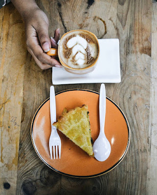 Tempatnya sangat nyaman untuk menurut saya. Tidak ramai, lampu tidak terlalu terang, kaca besar ada di kanan kiri sehingga kita bisa sambil menikmati kopi di tengah langit yang sedang sendu. Asik deh, untuk foto juga sangat bagus pencahayaannya. Caffe Latte enak rasanya, pas di lidah, tidak hambar. Namun, Peppermint milik Agatha ternyata rasanya lebih unik. Mungkin karena saya belum pernah mencoba pesan Peppermint di coffeeshop lain, bahkan saya belum pernah menemukan di tempat lain. Pie-nya cukup enak, namun sayang kurang besar porsinya. Wkwkwkwk