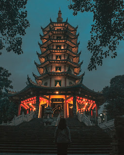 tangga. Pagoda yang berhias lampu-lampu penerang tampak lebih menawan. Keren