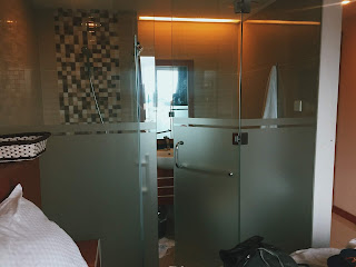 Kamar bersih, dengan sprei berwarna puith dan beberapa ornamen yang ada di atas bed. TV lumayan besar dan pas dengan ukuran kamar. Oh ya, ngomong-ngomong ukuran kamar yang saya review ini adalah yang nano atau kecil, ada yang lebih besar lagi. Di kamar keci ini seingat saya tidak ada kulkas, jadi ya jika ingin membeli minumn dingin harus berkunjung ke supermarket terdekat. View ke luar jendela sangat bagus jika cuaca sedang cerah, Gunung Sumbing tampak gagah menjulang sendirian, sangat menakjubkan jika pagi hari. Kamar mandi juga bagus, dindingnya kaca dan dekat sekali dengan bed. Namun, kita bisa melihat aktivitas di kamar mandi dari atas bed, karena kacanya tembus pandang, walaupun sedikit samar. Jadi, tahu artinya, kan? Wkwkwk
