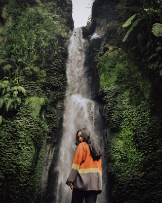 terjun. Kita akan melewati pepohonan pinus, dan jalan menurun berupa anak