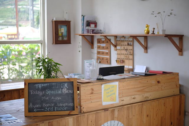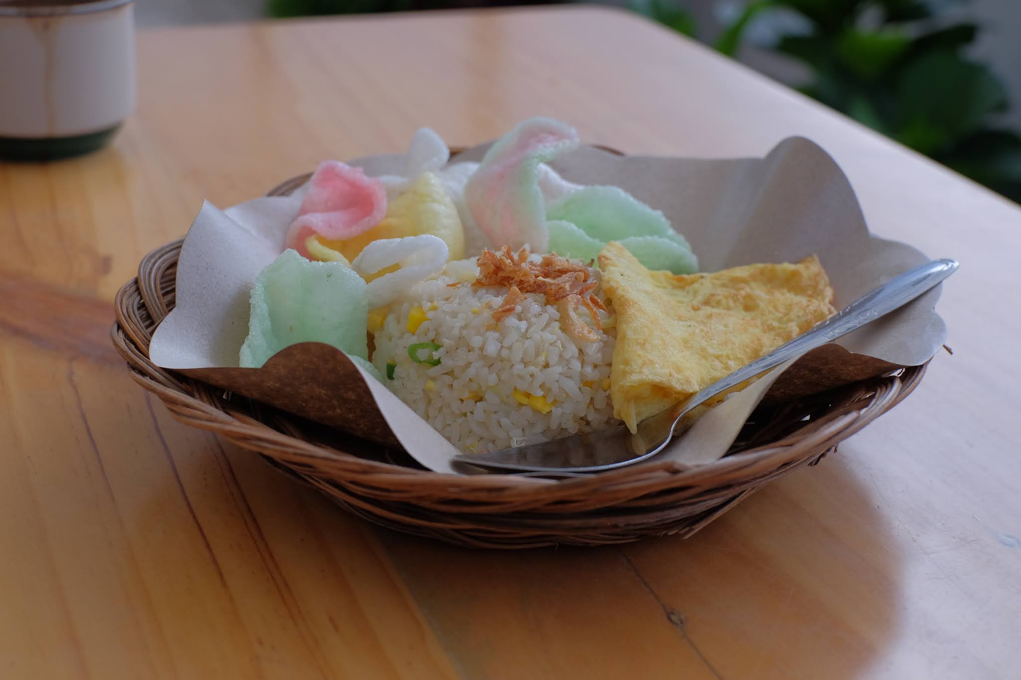 Dari sejumlah uang yang dibayarkan, ternyata kita juga sudah dapat 1 kali sarapan, lho. Kalian bisa memilih sarapan dengan nasi goreng atau roti panggang anget. Kalau saya mah yaaa sudah jelas pilih nasi goreng ya, kalau hanya roti paling 1-2 jam setelahnya sudah lapar lagi. Hahaha, maklum orang Indonesia kalau enggak nasi berarti enggak disebut makan. Tetapiii, ya nasi goreng itu menurut saya rasanya biasa saja, enggak istimewa sama sekali. Untung saya mah apa-apa doyan yaaa. Sarapan bisa diambil di kafe Temu Jumpa (lantai 3 dari Tani Jiwo) dengan menunjukkan voucher yang sudah kita dapat dari resepsionis.