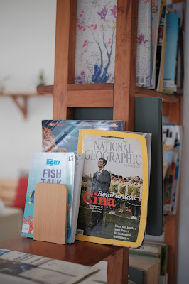 Buat yang senang bikin konten atau sekadar foto-foto, Tani Jiwo ini cakep banget dijadikan latar. Desainnya itu cenderung minimalis dan ketika tanpa dibidik pakai kamera pun sudah cakep parah ini bangunan. Banyak tanaman di dalam, buku-buku National Geographic berjejer di raknya.