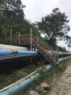 Tiket masuk per orang adalah Rp. 10.000,- dan Rp. 2.000,- untuk parkir motor. Dari awal pos tiket tidak terlihat sama sekali bahwa ada padang sabana di sini. Karena hanya ada bukit yang terlihat biasa saja seperti tidak ada tempat menarik di atasnya. Pada awal trek, kita akan menaiki sebuah tangga untuk melewati pipa besar milik PLTU. Setelah itu jalan cukup menanjak, dan trek terlihat sangat jelas. Beruntung sekali sore itu Gunung Pangonan sangat sepi. Saya tidak bertemu sama sekali orang pada awalnya.