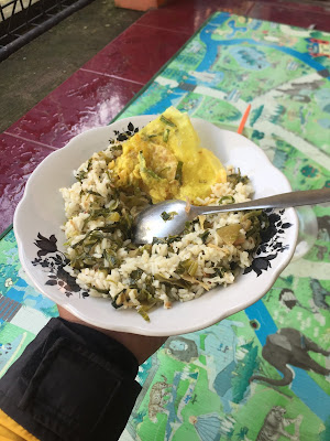 Setelah sedikit melakukan pencarian menggunakan GPS (Gunakan Penduduk Sekitar), saya akhirnya nemu juga tempatnya. Hm, ternyata memang benar-benar enggak seperti tempat makan. Dugaan saya, sepertinya warung makan ini lebih sering menerima pesanan online mungkin ya. Karena sudah sampai dan tanya-tanya, ya sudah pesan saja. Enggak enak kalau misalkan enggak jadi, keburu lapar juga habis perjalanan jauh. Saya memesan satu paket Nasi Megono lengkap dengan teh hangat dan tempe kemul (gorengan khas Wonosobo), ternyata rasanya enak bangeett. Pantas saja rating di Grab bagus. Benar-benar enggak nyangka saya. Hahaha