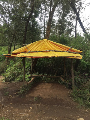 Untuk sampai sabana, kita akan melewati 6 buah pos semi permanen beratapkan terpal. Kalau saya lihat bentuknya ada yang malah mirip seperti warung, mungkin bakal ada yang jual ketika weekend, tapi berhubung saya berkunjung saat weekday jadi pos-pos ini bisa digunakan duduk dan istirahat. Jarak masing-masing pos ini terbilang dekat. Setiap berjalan 10-15 menit kita akan bertemu dengan pos-pos tersebut. Enggak seperti gunung-gunung tinggi biasanya yang setiap pos jarak tempuhnya bisa lebih dari 4 jam. Amsyooong